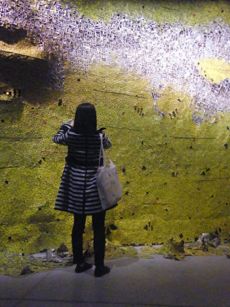 Si tratta di un’opera dello svizzero Christoph Buchel, intitolata Barca Nostra, che consiste nel relitto di una piccola nave affondata nel Canale di Sicilia il 18 aprile 2015, con alcune centinaia di persone a bordo, tutte morte annegate.